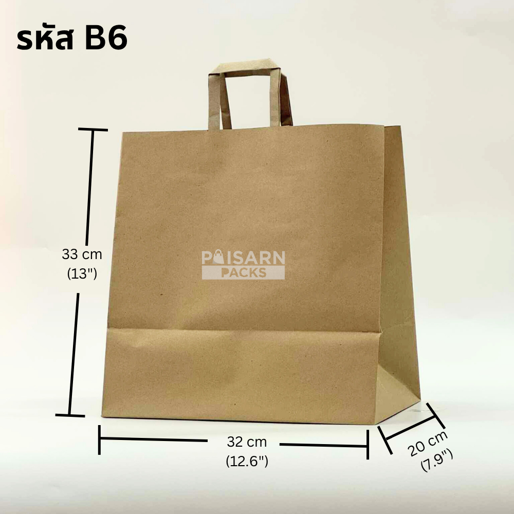 ขนาดของถุงกระดาษคราฟท์เข้ม หูแบน รหัส B6
